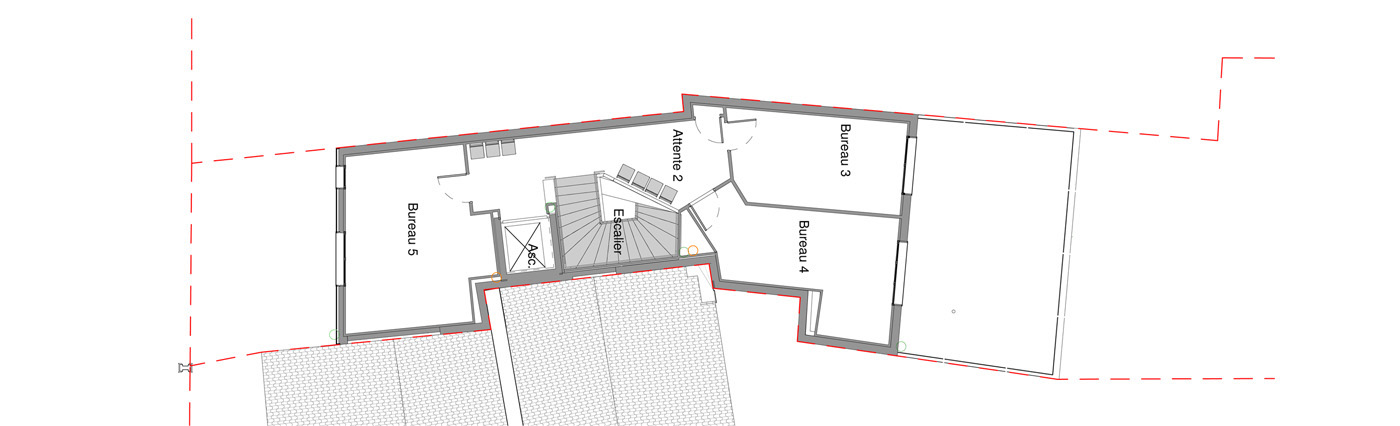 L'ascenseur et l'escalier aux normes du neuf servira de point pivot entre les différents espaces d'attentes et de services.