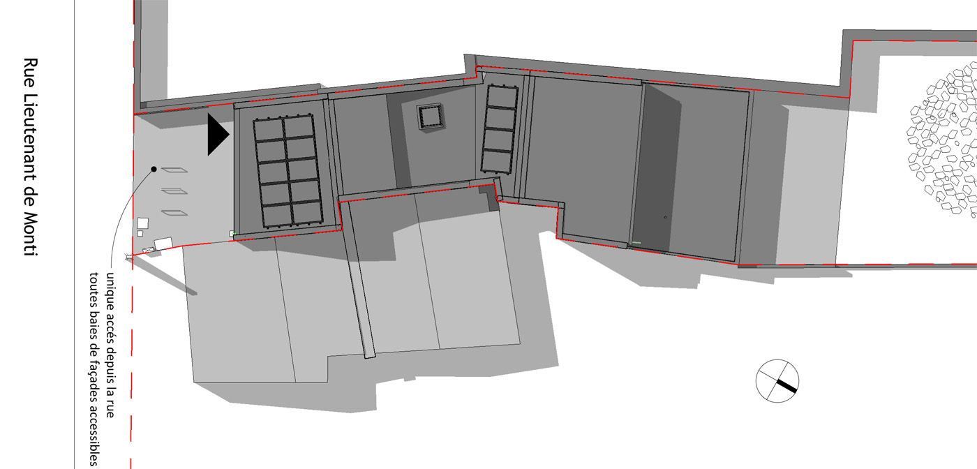 Le programme de cet ERP (etablissement recevant du public) pour l'installation de 5 bureaux de consultation de medecine Générale va s'inscrire au chausse pied dans cette parcelle contrainte toute en longueur.
