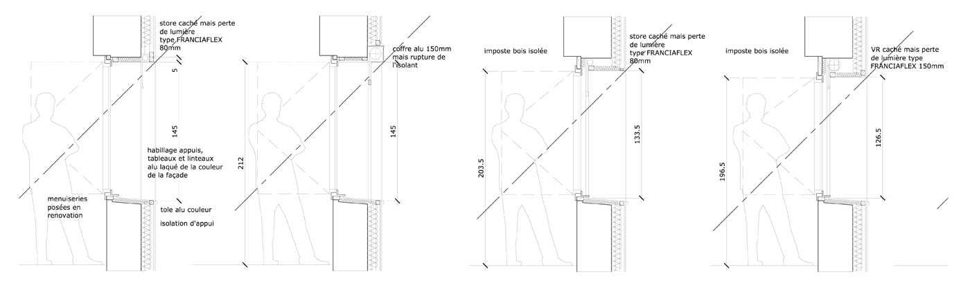 | Travaux: | frangements des refends et pose de poutres acier, isolation par l'extérieur (ITE), menuiseries aluminium, réhabilitation intérieure |