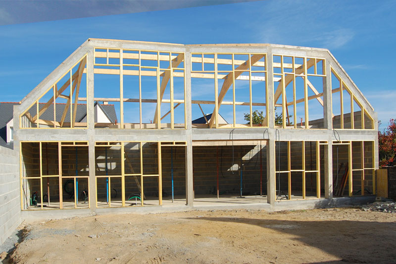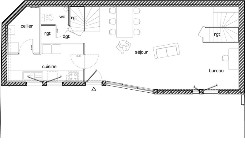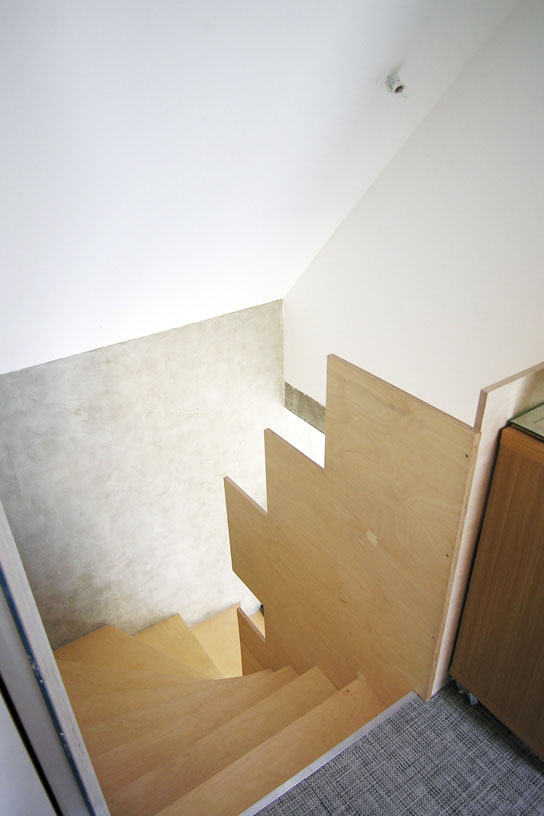 | Une seule façade plein sud à protéger par une isolation doublée en laine de roche. 2 Escaliers en panneaux de peuplier brutes | |