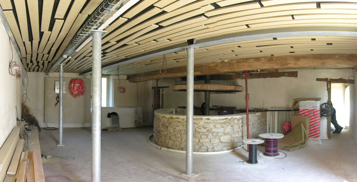 | Travaux: | Salle de réception communale avec plafond acoustique, pose d'une turbine électrique avec rénovation de la roue à aubes, revêtement résine PU |